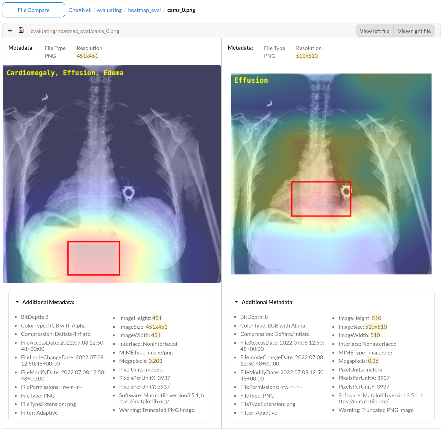 DagsHub relies on a context-focused approach for image diffing. Placing images side-by-side allows you to visually view and compare changes.