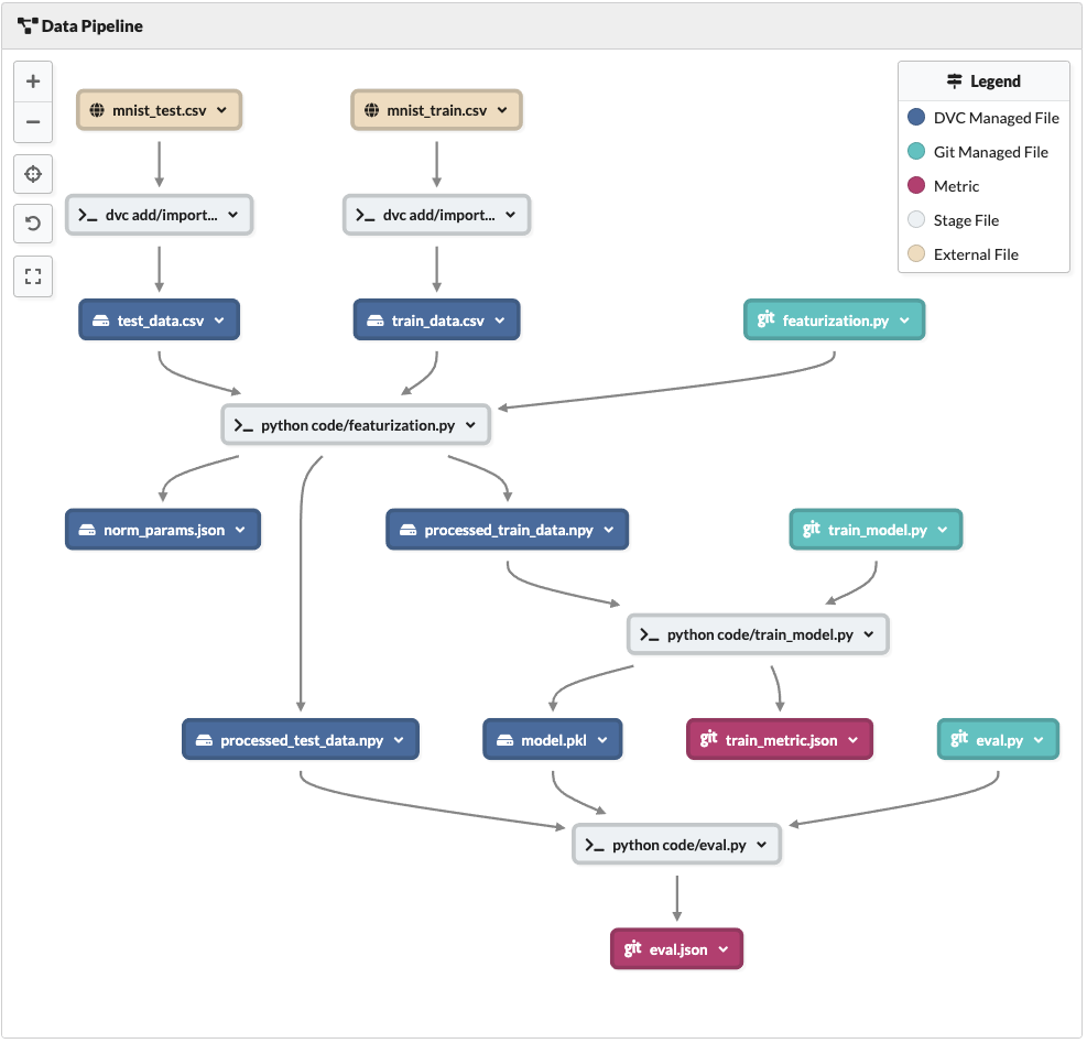 Throughout this tutorial, we have used Git to version and share our code files as well as the dvc stage files that have been created throughout our pipeline.