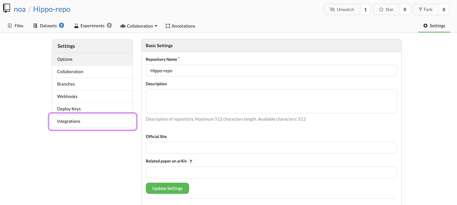 Navigate to the Integration section.