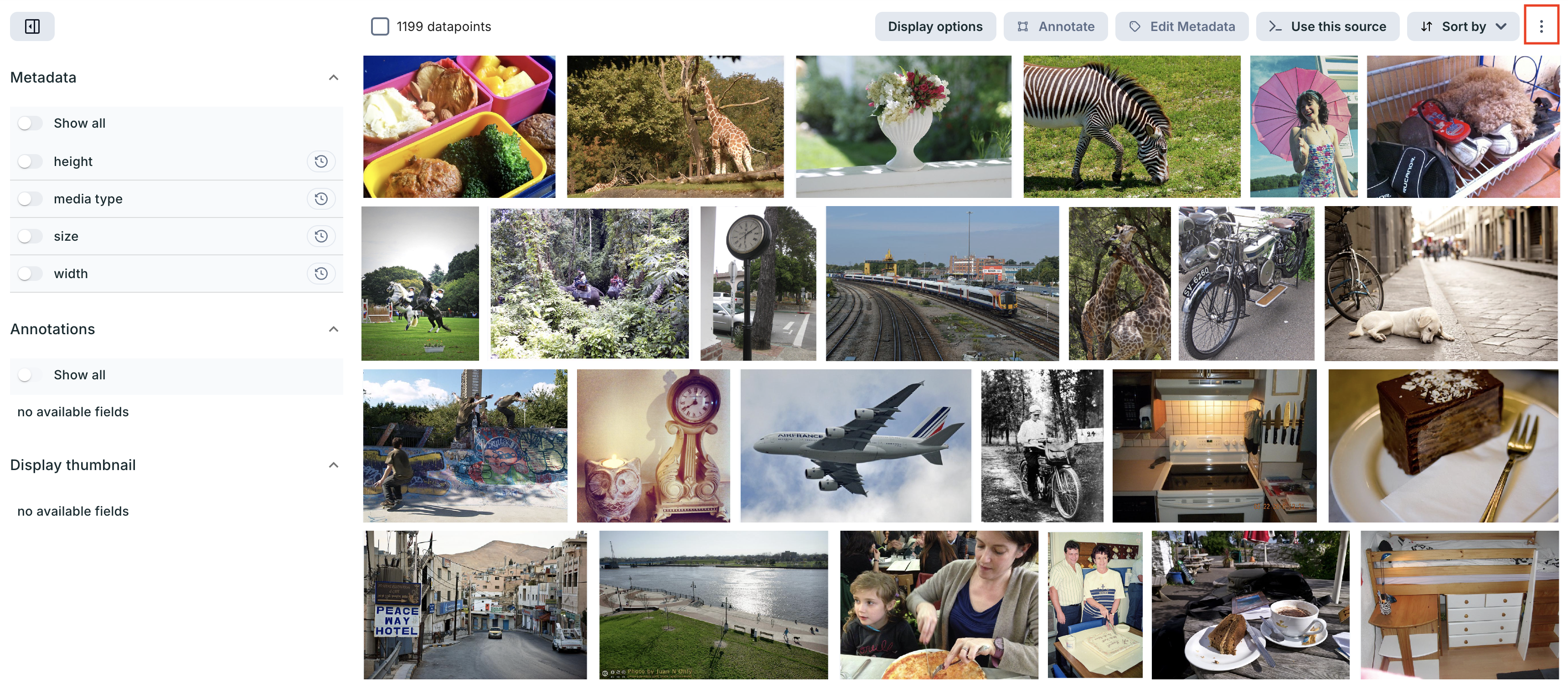 In the data source page, look for the vertical three dots icon on the right side of the top navigation bar (see image below):
